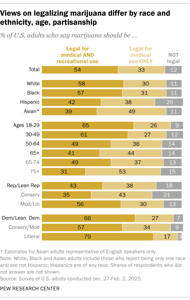The survey also showed majority support for legalization in some form across every demographic—including age, race and political party affiliation.