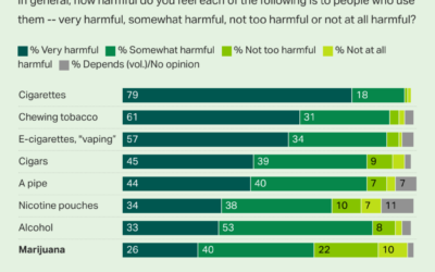 “Although U.S. adults are less likely to call marijuana ‘harmful’ than to say this about seven other substances, slim majorities now believe marijuana has a negative effect on its users and society as a whole,” it said.