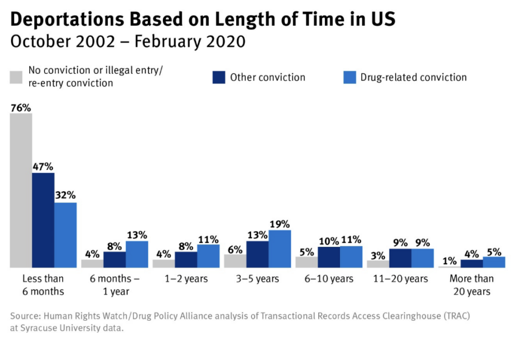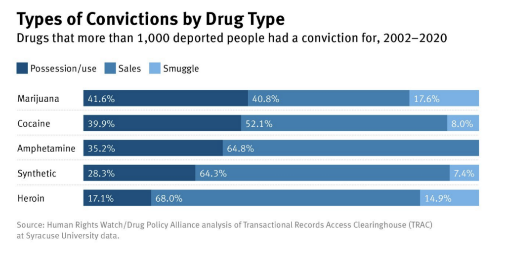 Between 2013 and 2020, it continues, “an additional 240,000 people have been deported whose most serious offense was for drugs, amounting to about one of every five deportations of immigrants with a criminal conviction.”