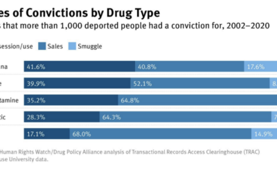 Between 2002 and 2020, the report from Human Rights Watch (HRW) and the Drug Policy Alliance (DPA) found, half a million people were expelled from the U.S. whose most serious offense was a drug charge. Of those, the analysis shows that at least 156,000 peoples’ most serious charges was for simple drug use or possession, including more than 47,000 people for marijuana use or possession.