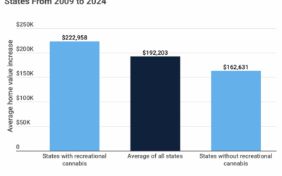 All told, says the report, from real estate platform Clever Offers, states with recreational cannabis have seen average home values increase by $222,958 since 2009, while states without adult-use marijuana have seen average increases of $162,631.
