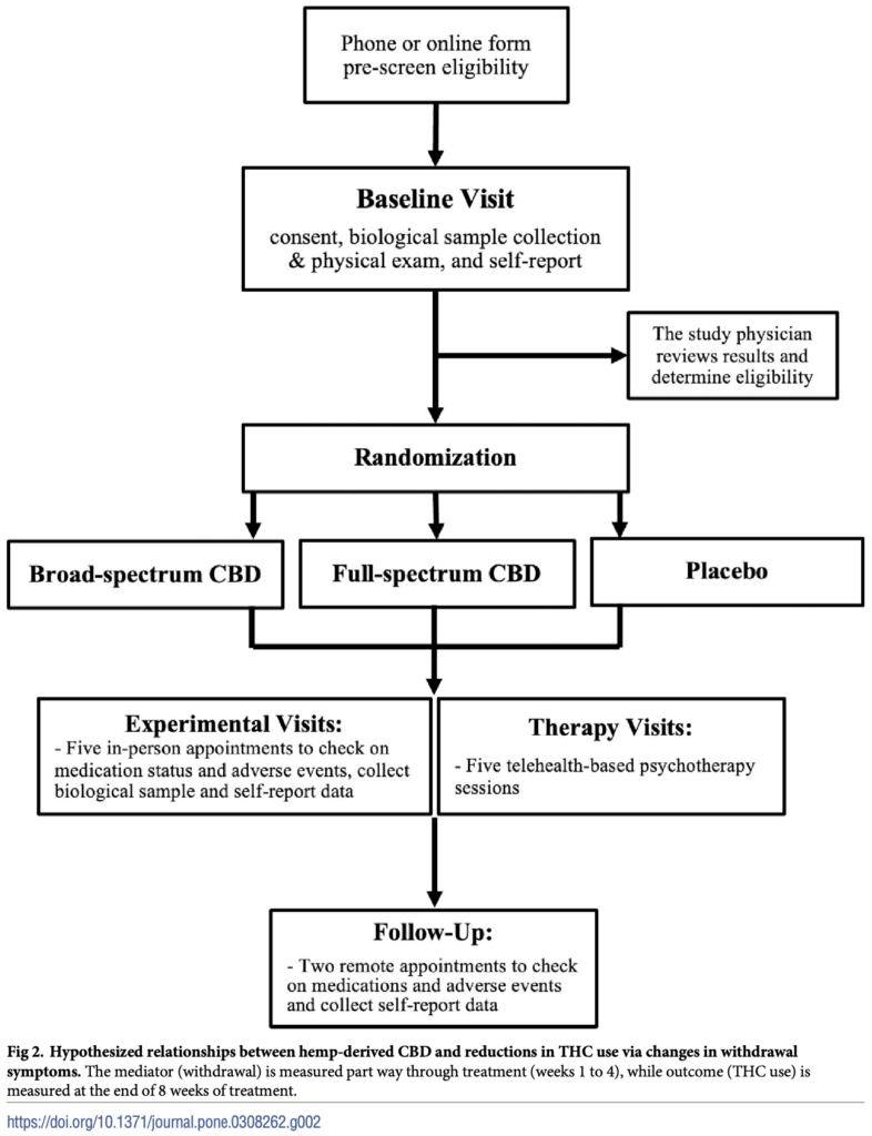 The model would split participants into three groups and give each person eight softgels to take orally per day. Participants in the placebo group would receive no CBD, while those in the full-spectrum and broad-spectrum groups would receive a total of 400 milligrams of CBD per day.