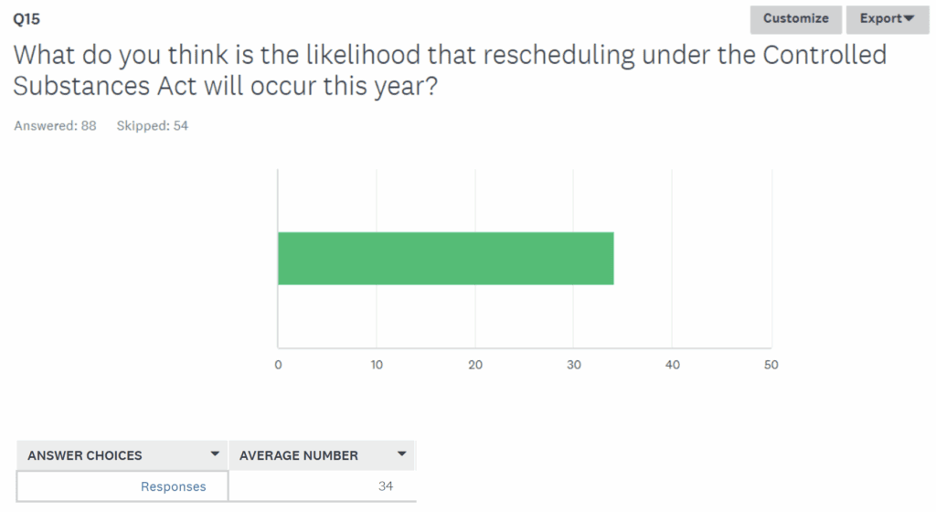 When asked to rate the prospects that rescheduling would be achieved this year on a scale from 0 to 100, the average response was just 34.